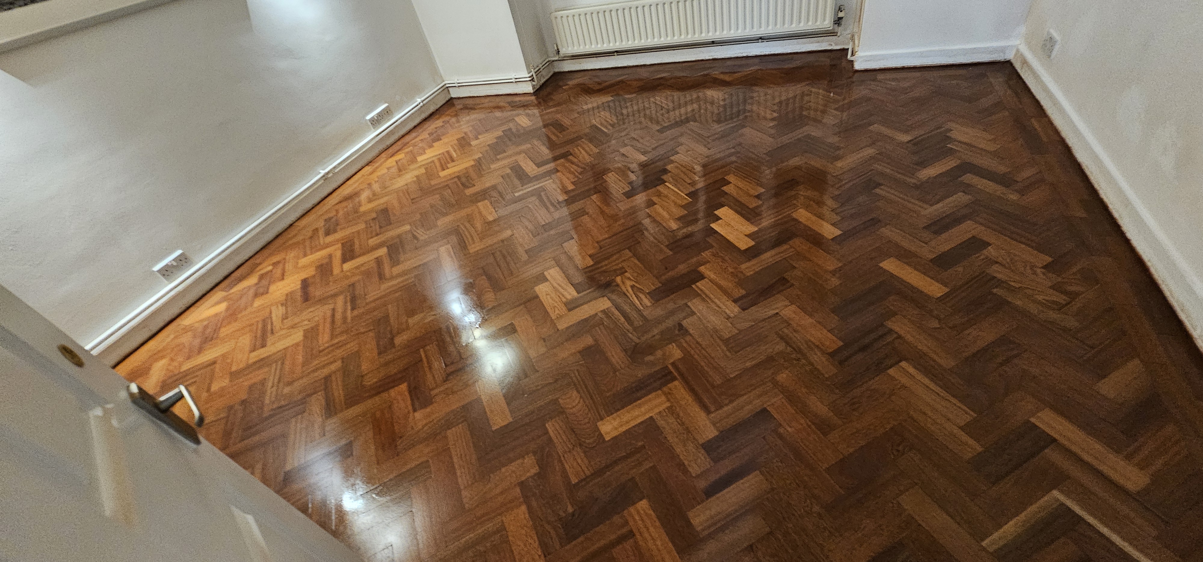 All work was completed to specification and signed off by the client on the day. Typical costs for this type of work in London range from £25-45 per sqm for sanding and finishing, depending on floor condition, area size and finish selected.